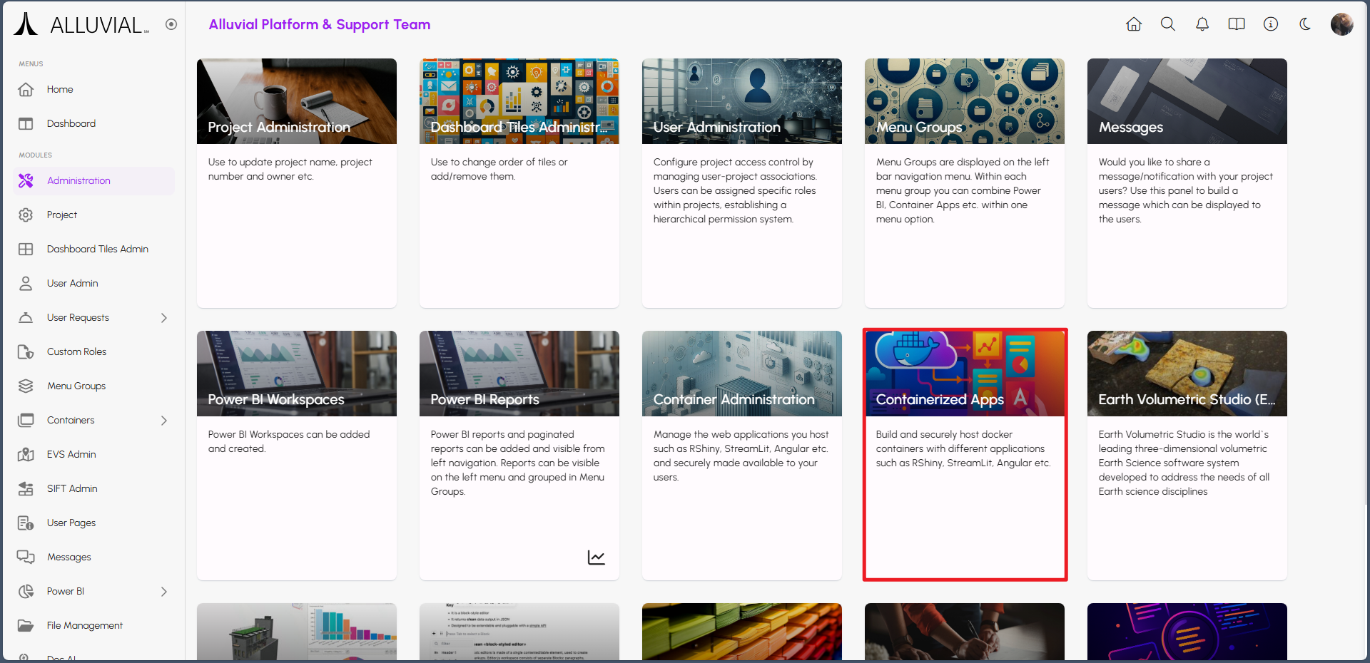 Project administrators can add containerized apps directly to a project. This lets teams deliver custom tools (for example, analytics dashboards or modeling apps) alongside reports and dashboards, all within the same secure, role-based interface.