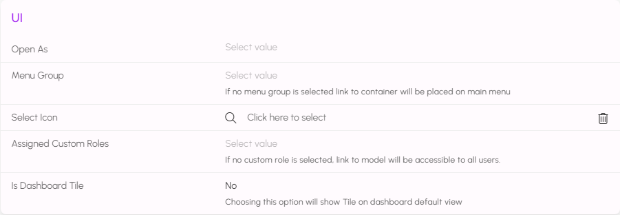 Scroll down the form further to configure other options, such as Menu Groups, Custom Roles, and Dashboard Tiles.