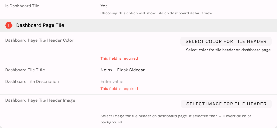 - Enable Dashboard Tile by setting the option to Yes.