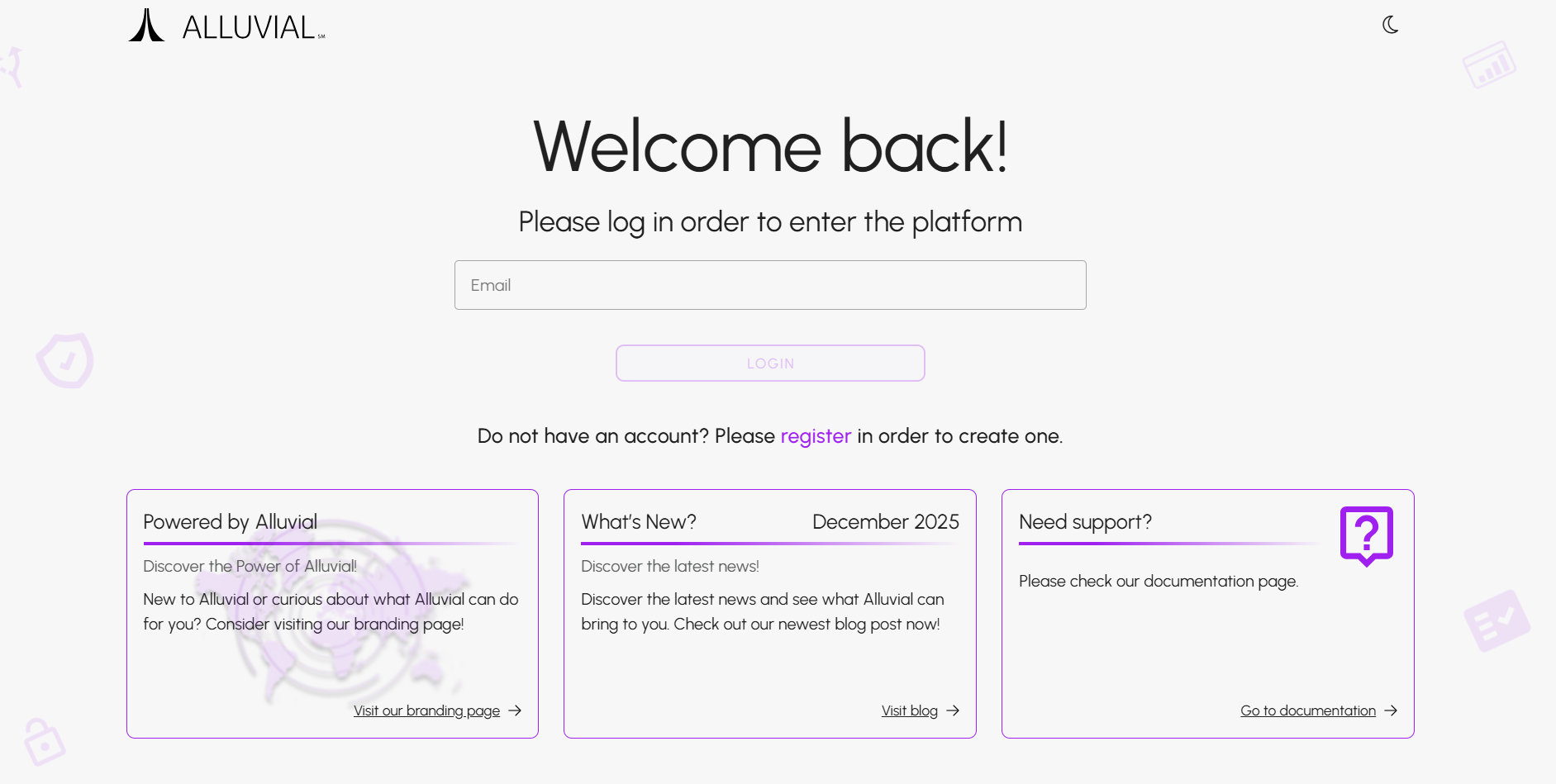 To log in, visit the Alluvial login page.